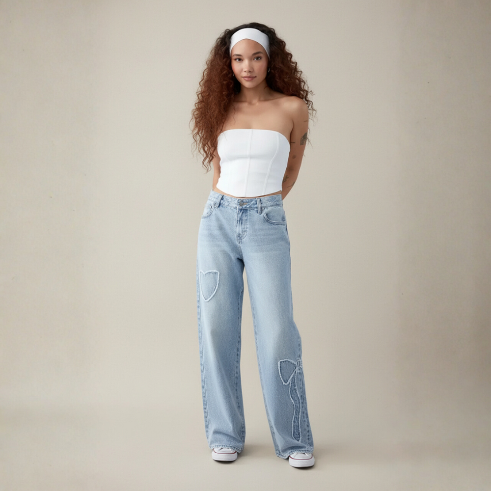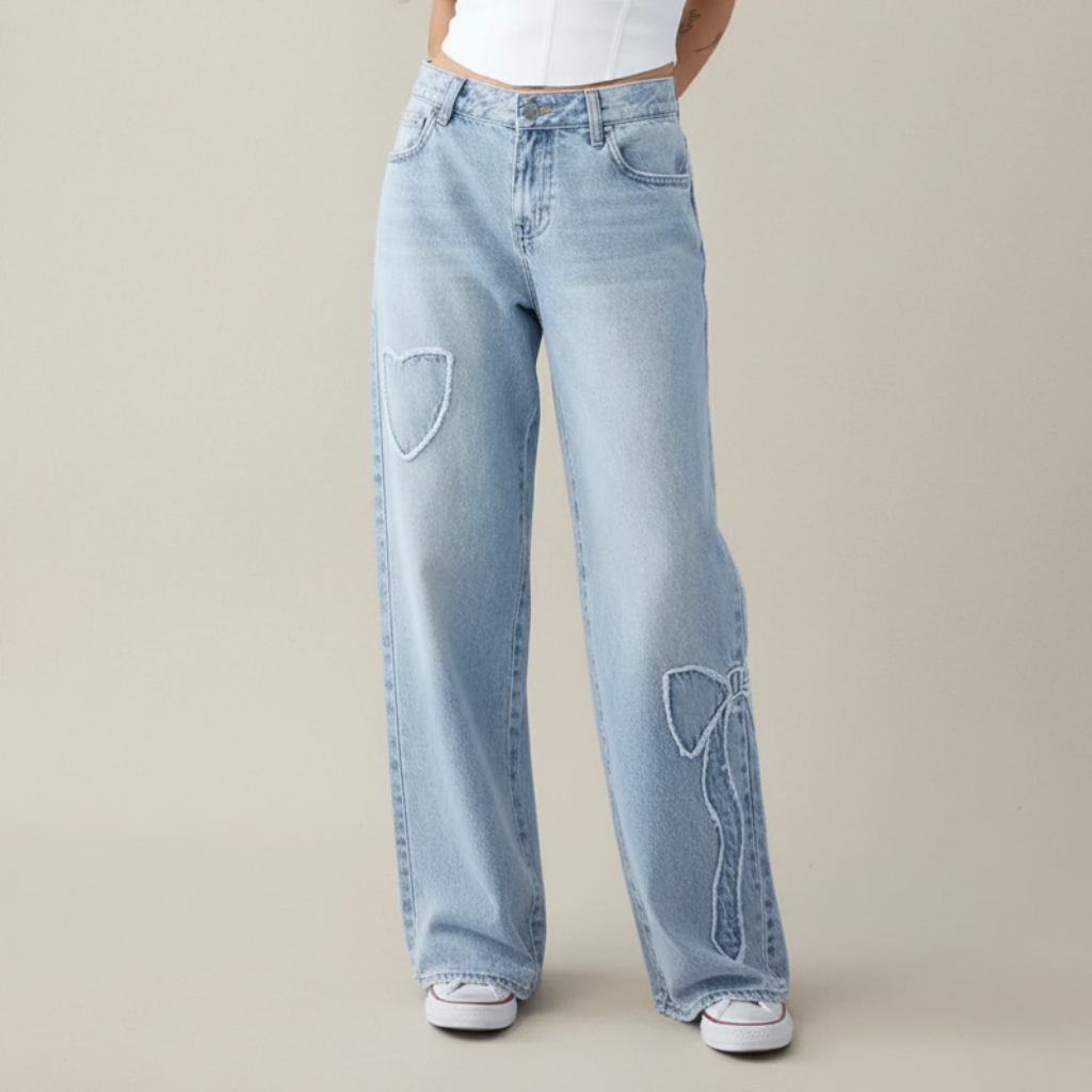 Weite Jeans für Damen mit Herz-Patch-Details – Modischer Streetstyle für Alltag und Freizeit