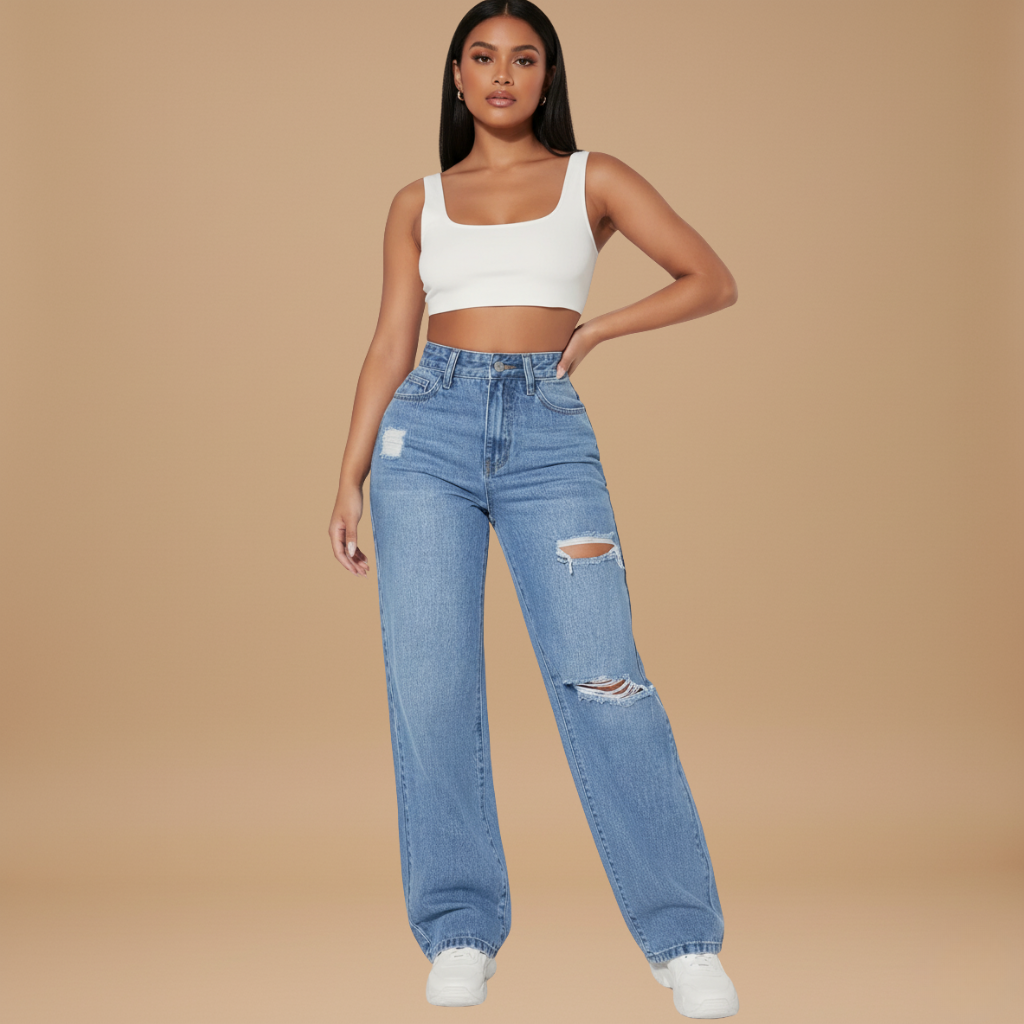 Zerrissene Jeans Damen – Hohe Taille, Weit Geschnitten, Lässiger Stil
