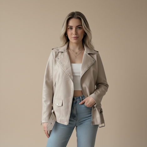 Jacke Damen mit Gürtel – Moderne Taillierte Kunstlederjacke für Vielseitige Anlässe