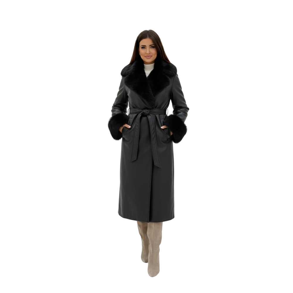 Leder Mantel Damen mit Felldetails und Taillierbarem Design – Eleganter Stil für Stilvolle Anlässe