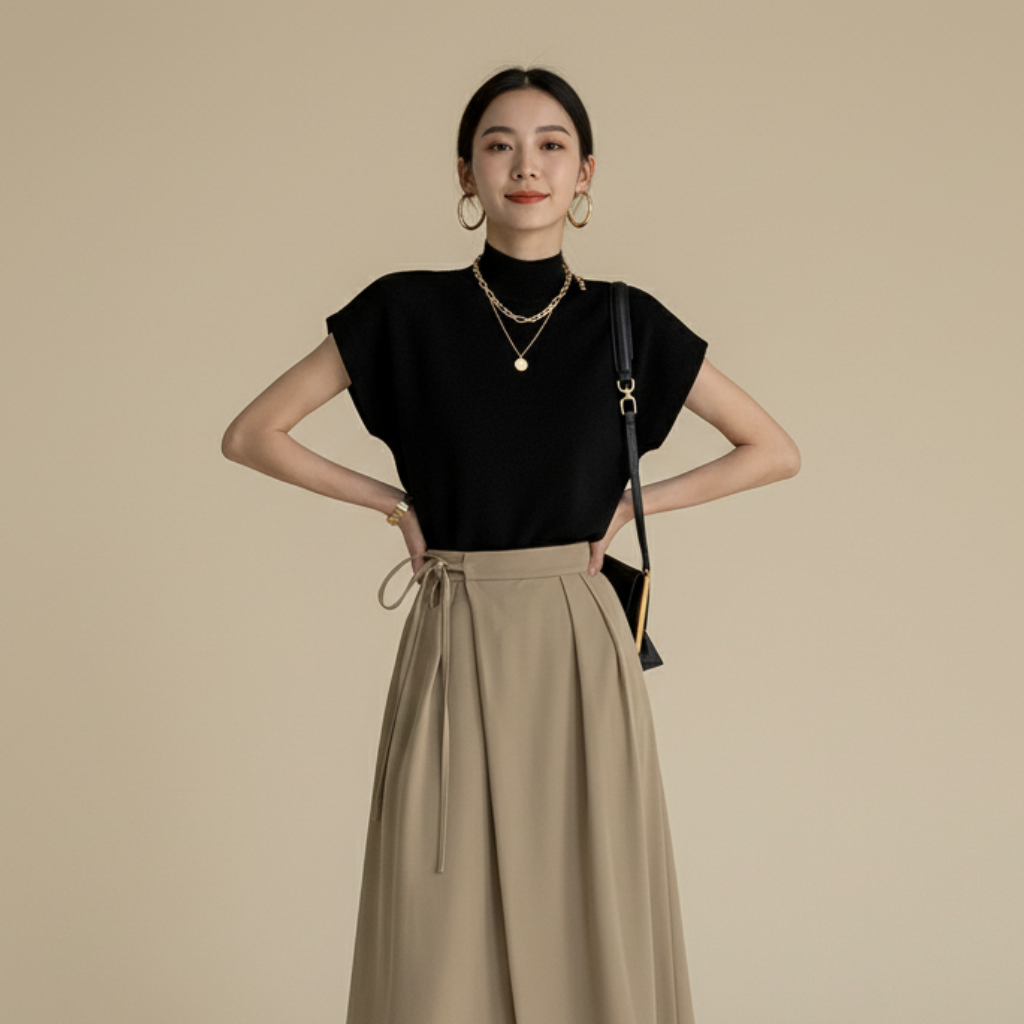 Elegantes Strickoberteil mit Stehkragen und kurzen Ärmeln für Damen – Vielseitiges Büro-Outfit