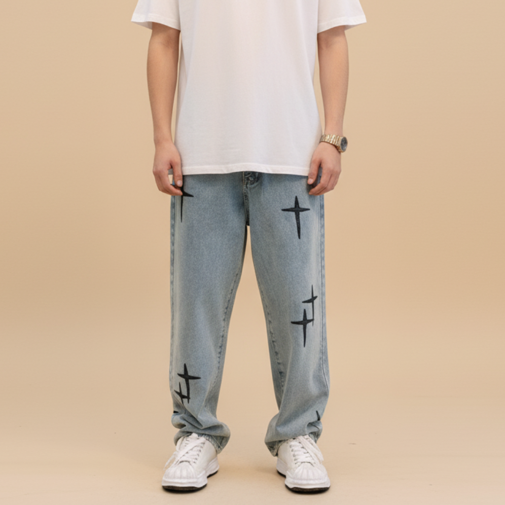 Vintage Baggy Jeans Herren mit Weitem Schnitt und Designer-Prints – Lässige Cargo Jeans für Alltag und Streetwear