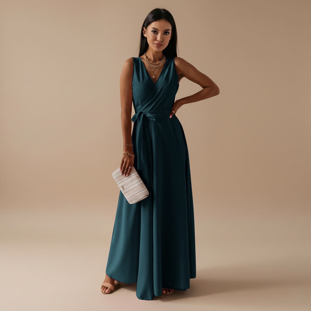 Festliches Damenkleid mit V-Ausschnitt – Elegantes Kleid für Hochzeitsgäste und besondere Anlässe