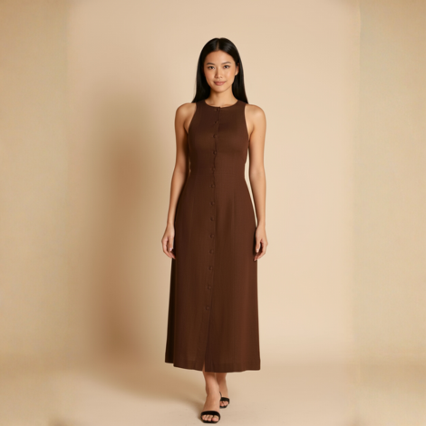 Midikleid für Damen mit Ärmellos und Taillierter Passform – Elegantes Leinen Design