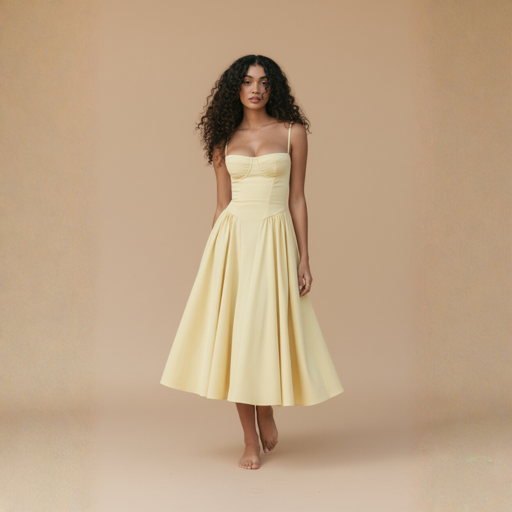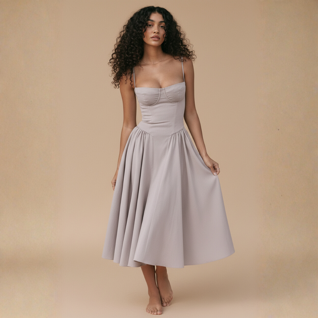 Erleben Sie zeitlose Eleganz mit diesem trägerlosen Kleid, das raffinierte Plisseefalten mit stilvoller Leichtigkeit kombiniert. Der schulterfreie Schnitt betont das Dekolleté und sorgt für eine feminine Ausstrahlung. Die zarten Falten verleihen dem Kleid eine anmutige Bewegung, während das leichte Material höchsten Tragekomfort bietet – ideal für besondere Anlässe und elegante Auftritte.